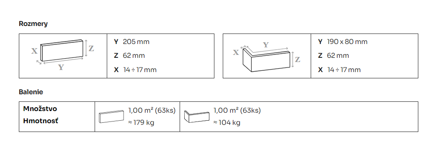 - Rozmer: 205 x 62 x 14 mm